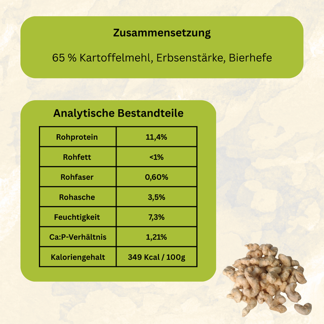 Im Unterschied zu herkömmlichen Hundepopcorns bestehen unsere POPS aus Kartoffeln statt Reis. Das sorgt nicht nur für einen hervorragenden Geschmack, sondern auch für eine besonders gute Verdaulichkeit – perfekt für sensible Hundemägen. Gleichzeitig hat die Kartoffel einen kleineren ökologischen Pfotenabdruck: Beim Anbau entstehen weniger klimaschädliche Gase und es wird weniger Wasser verbraucht.